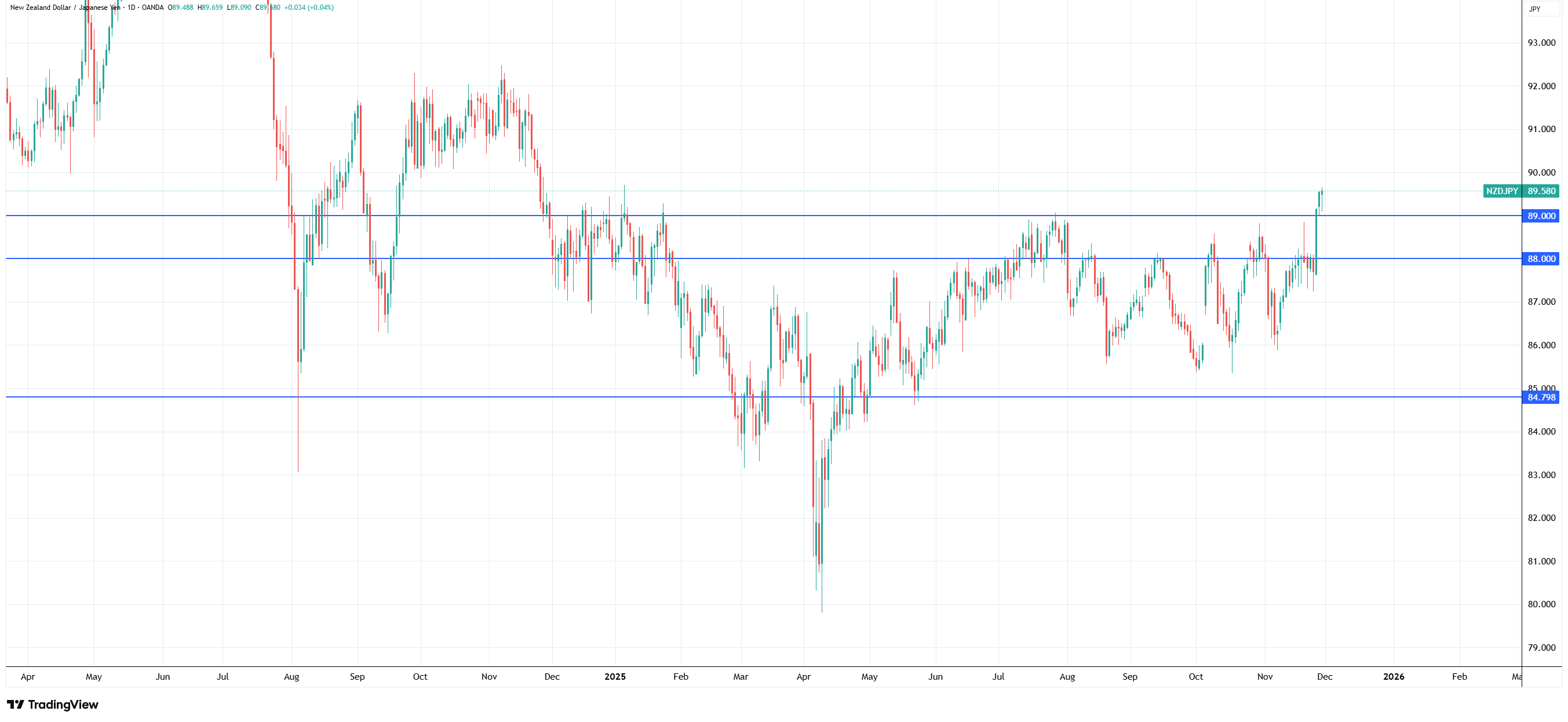 After five full months of range trading, this pair has finally broken out, closing above a key level of 89 and rejecting the pullback.