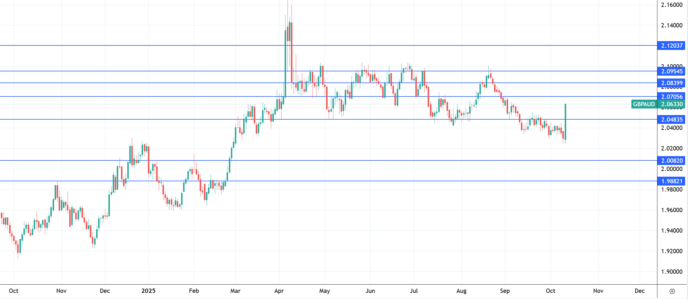 Last week marked an incredible contrast for risk assets. Early in the week, equities shrugged off the US government shutdown to reach new highs, only to flash crash on Friday when President Donald Trump announced 100% tariff hikes on Chinese imports and called China's rare earth controls "hostile". The result was the worst weekly loss for major indices since late May, as the Dow Jones went down as much as 2.7%. With the U.S. government shutdown halting key data releases, equities traded on positioning and headlines—until trade risk repriced everything in a single session.