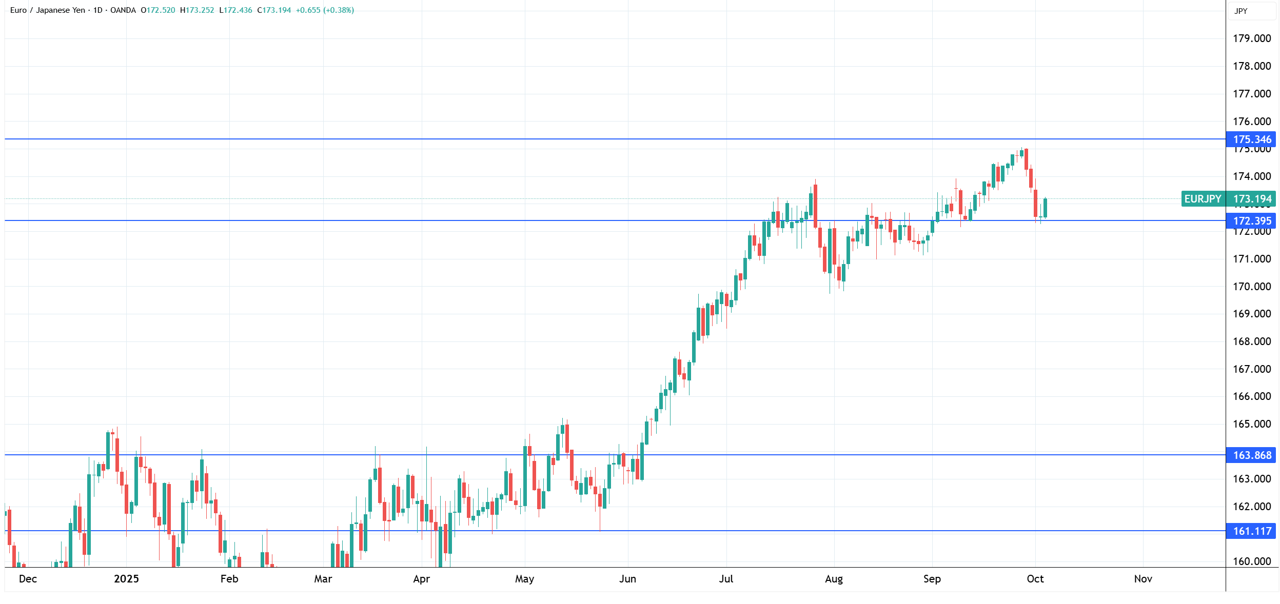 EUR/JPY Daily chart, Source: TradingView